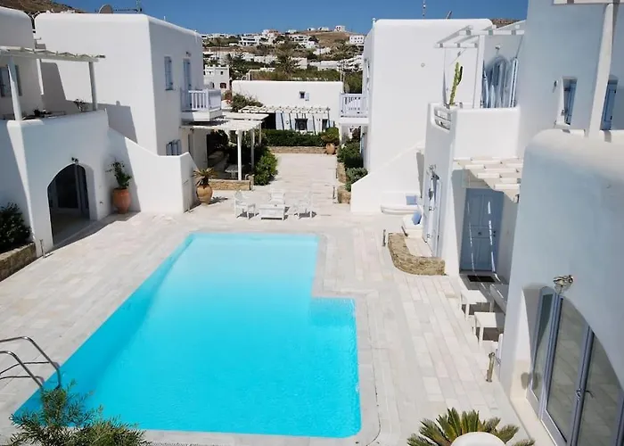 Villan med 2 badrum ligger också ungefär 10 minuter med bil från Mykonos gamla hamn och ungefär 15 minuter med bil från Paranga strand.